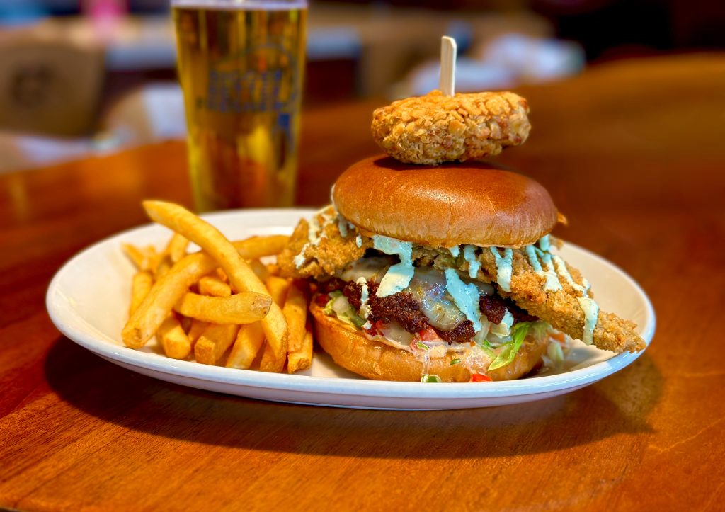 House-made beef-chorizo smash patty topped with pepper jack, chipotle mayo, pico de gallo, cilantro crema, and a crispy, smoked Anaheim pepper. Finished with our signature armadillo egg.