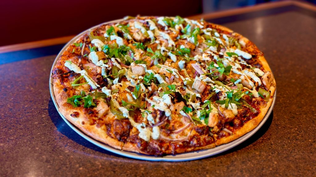 Built on top of our house-made dough, topped with chile sauce, armadillo spread, mozzarella cheese, grilled chicken, Anaheim peppers, red onion, feta cheese, finished with fresh cilantro and cilantro crema.